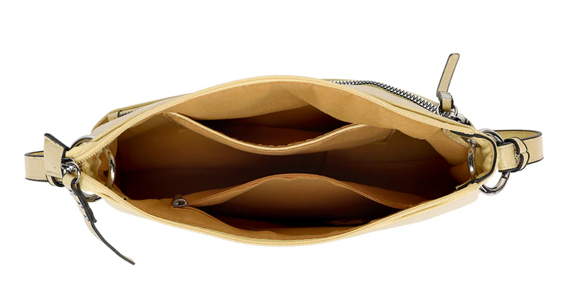 Detachable strap with 23" drop for shoulder or crossbody wear